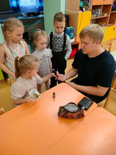 В гости к детям групп "Говорушки" и "Непоседы" МБДОУ №31 г. Апатиты приходил младший научный сотрудник Центра энергетики Севера КНЦ РАН Климов Андрей Александрович. Он рассказал детям об электричестве и энергосбережении, о правилах безопасного обращения с электроприборами. Ребята с интересом слушали, задавали вопросы и участвовали в опытах.